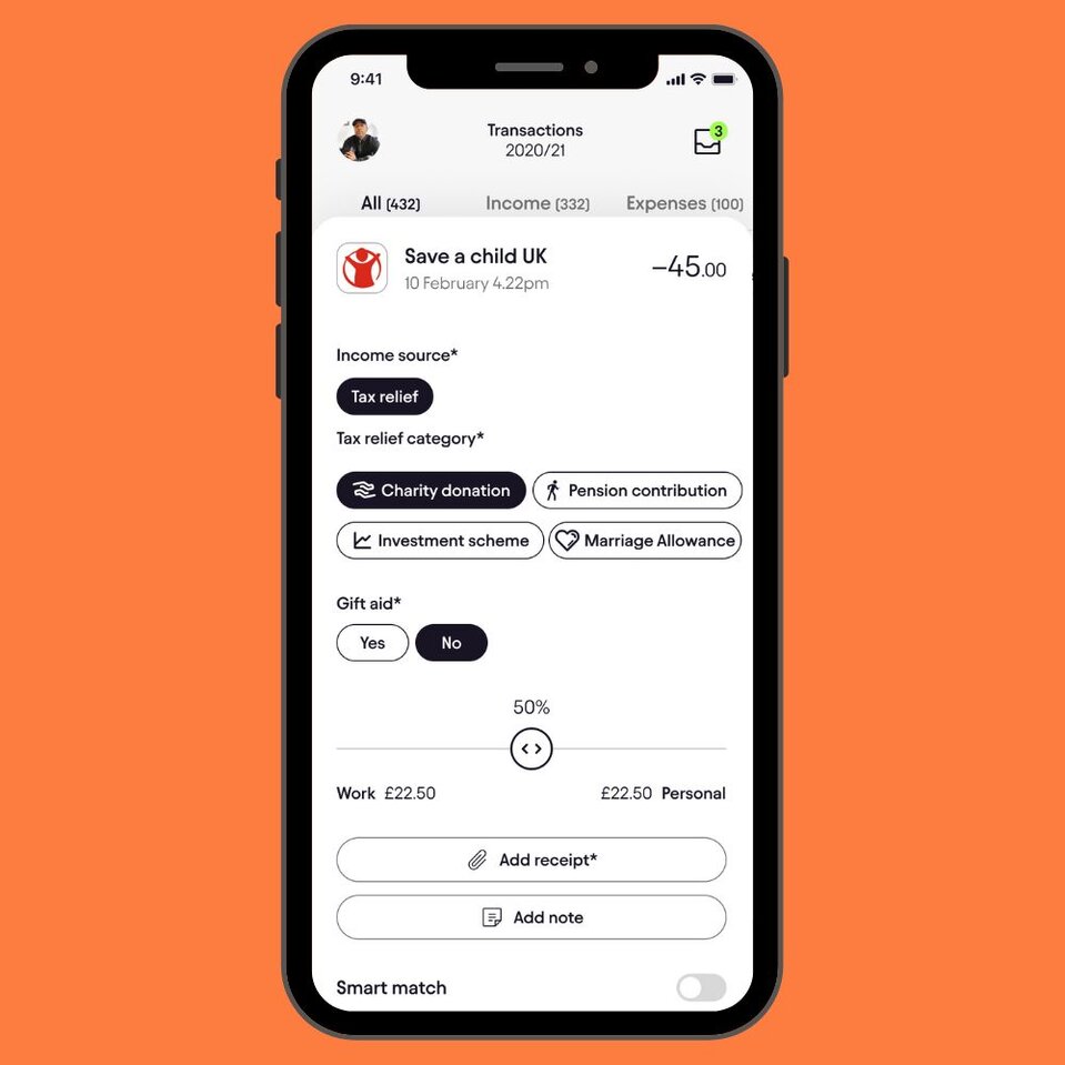 Gone are the days of fiddling with paperwork or second guessing how to include reliefs in your return. With our new in-app feature, you simply connect to your bank and select the type of relief.