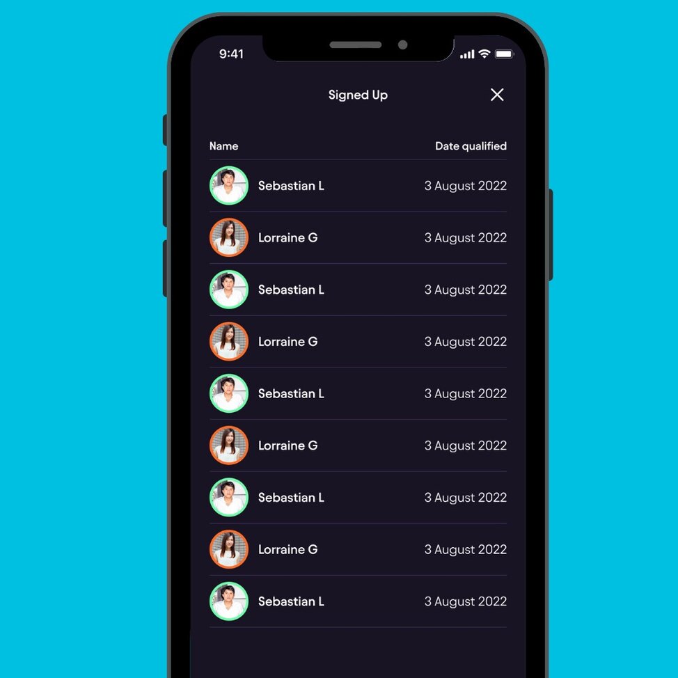 Easily monitor everyone who joins through your link, all in one place inside the Pie App.Track Sign Ups