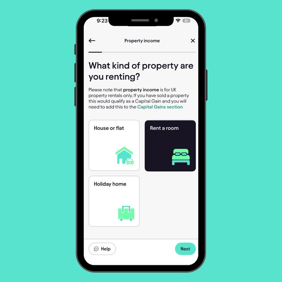 To add a property income source, tap ‘Quick Add’ on the Pie App home screen. Choose ‘Create an Income Type’ and select Property. Once you’re in, you’ll see an option to choose ‘Rent a Room’ if that applies.Step 1