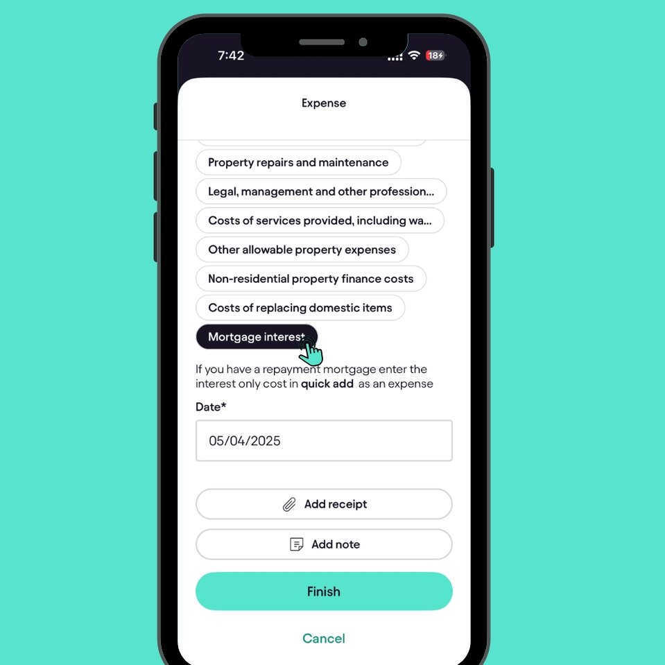 Scroll down and select Mortgage interest from the property expense categories. Your mortgage interest is now saved and automatically reflected in your tax calculations. That’s it you’re done in seconds.Choose the Expense category